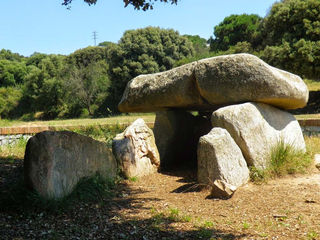 Passat el camí d’accés a la casa i dues pistes a mà esquerra, arribem al dolmen de can Planes, primer d’aquesta ruta. Es tracta d’un dolmen del tipus denominat de petita galeria catalana i que conserva cinc lloses de les quals formaven la cambra sepulcral.