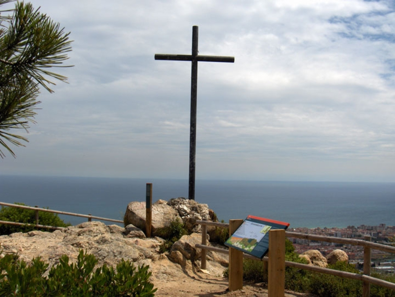 Passant pel caminet, a mà esquerra, trobem una gran pedra anomenada la Pedra de l’Elefant. A pocs metres, rebem l’impacte visual de trobar-nos amb els repetidors de televisió. Deixant-los enrere, passem pel pas més rocallós de l’itinerari arribant finalment a la Creu de Montcabrer. Al segle XVII ja hi ha documentada l’existència d’una creu al cim del turó de Montcabrer. El primer de maig de l’any 1707 una forta pluja va malmetre greument els conreus i els sembrats de tota aquesta zona. Com a signe de protecció contra les tempestes, les pedregades i les malediccions diabòliques, el 7 de juny del mateix any va ser col·locada, en aquest indret, una creu de fusta que contenia les relíquies dels Sants Màrtirs de Vilassar de Dalt. Vint anys després, un llamp va fer malbé la creu i es va substituir per una de ferro. Les relíquies van ser retornades al seu lloc d’origen. La creu fou retirada durant la guerra civil i, un cop acabada, el poble de Cabrils va plantar-ne una de nova que va ser substituïda per l’actual a mitjan anys 80.