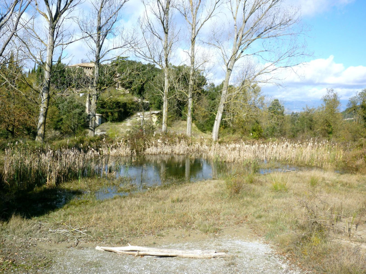 Vorejarem els camps i agafarem un corriol ombrívol envoltat de boixos que desemboca en una pista ampla, la qual ens portarà fins a la bassa del Brudon.