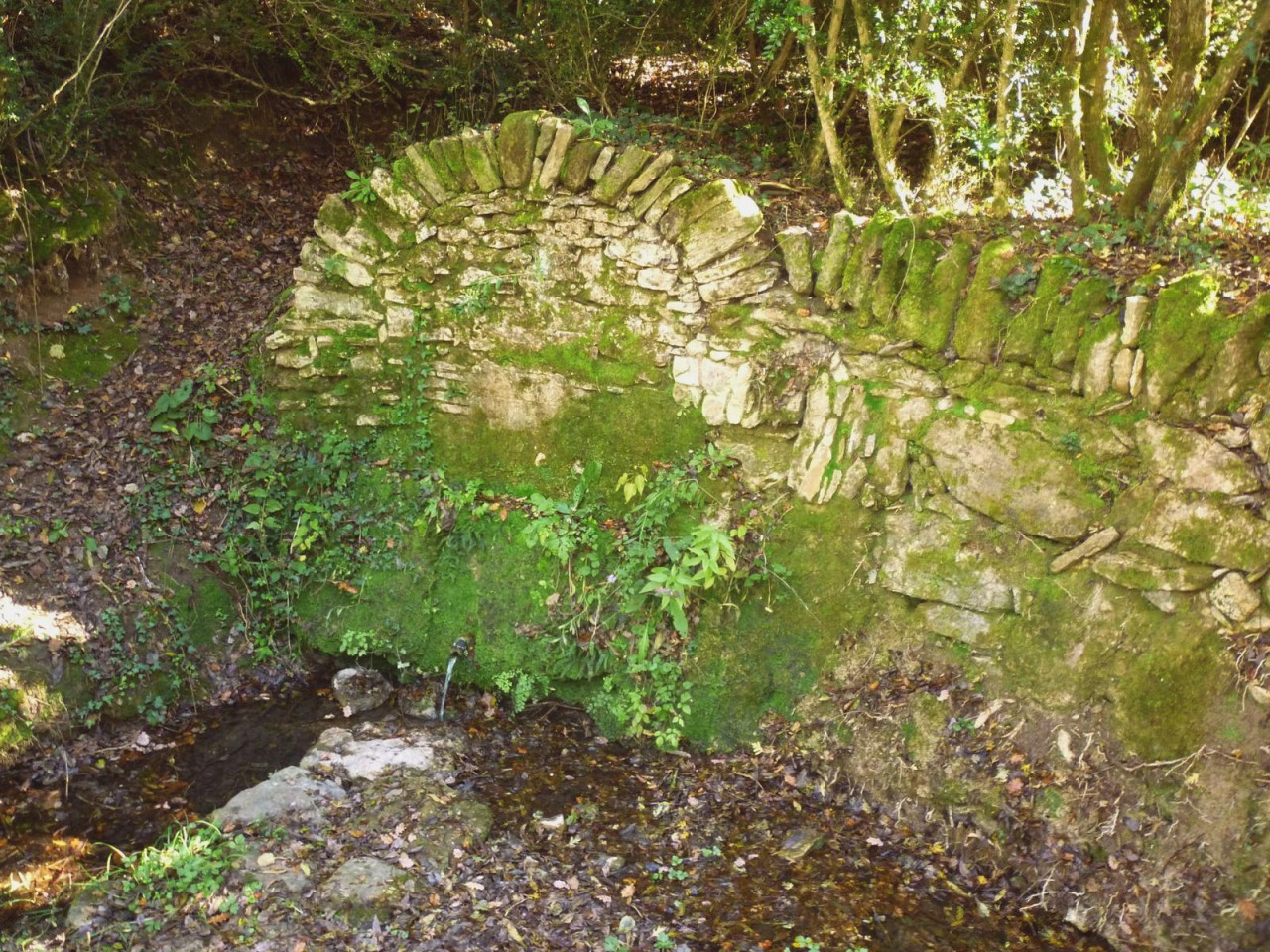 Deixarem l’ermita a l’esquerra i agafarem una rambla de moreres, per on sortirem del poble. Després de passar per uns camps de conreu, ens endinsarem en un bosc humit i dens de roures, on trobarem l’accés a la font de Puigsec. Cal desviar-se uns 30 metres per baixar a visitar aquesta font.